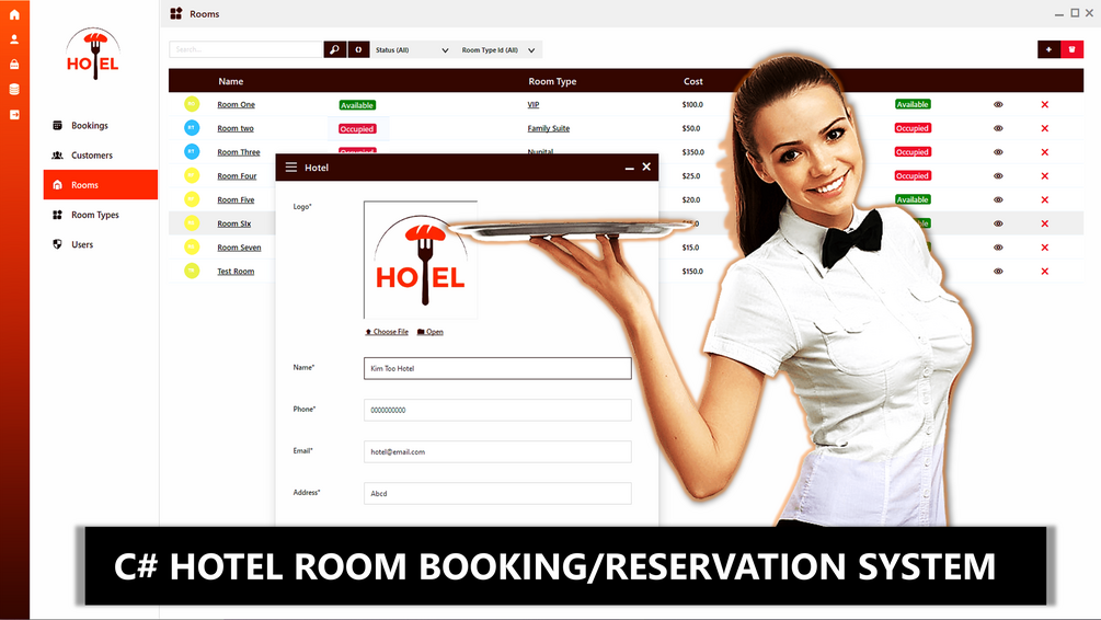 Modern Hotel Room Booking & Reservation System - C# WinForms